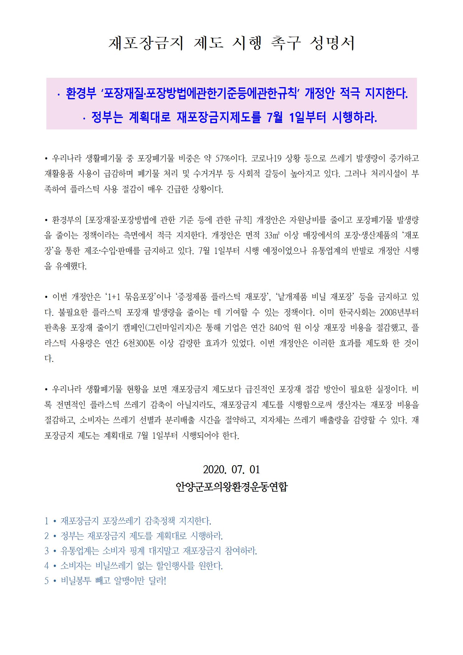 ∙ 환경부 ‘포장재질·포장방법에관한기준등에관한규칙’ 개정안 적극 지지한다.