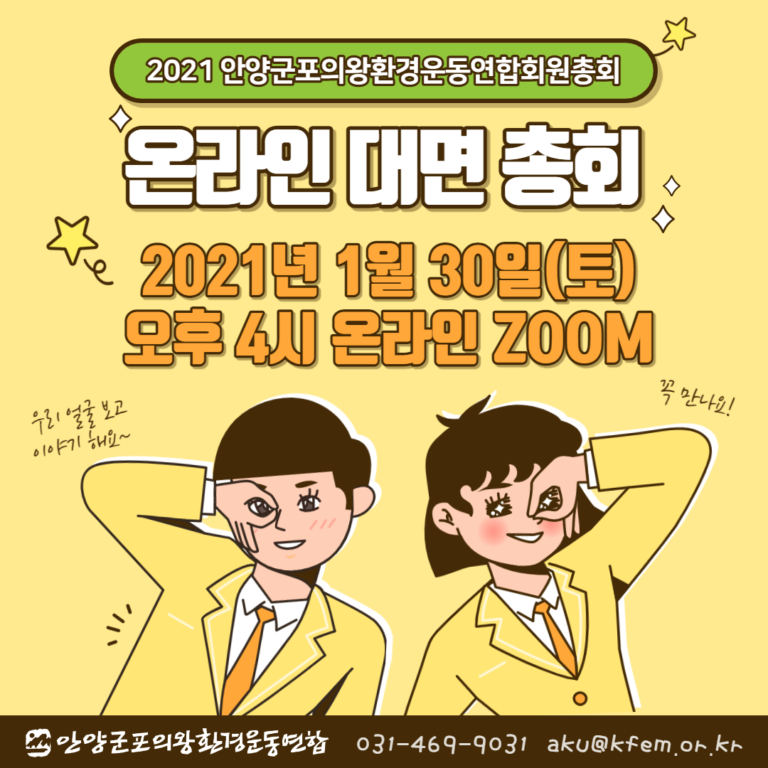 안양군포의왕환경운동연합 2021년도 정기총회 개최를 다음과 같이 공고합니다.
