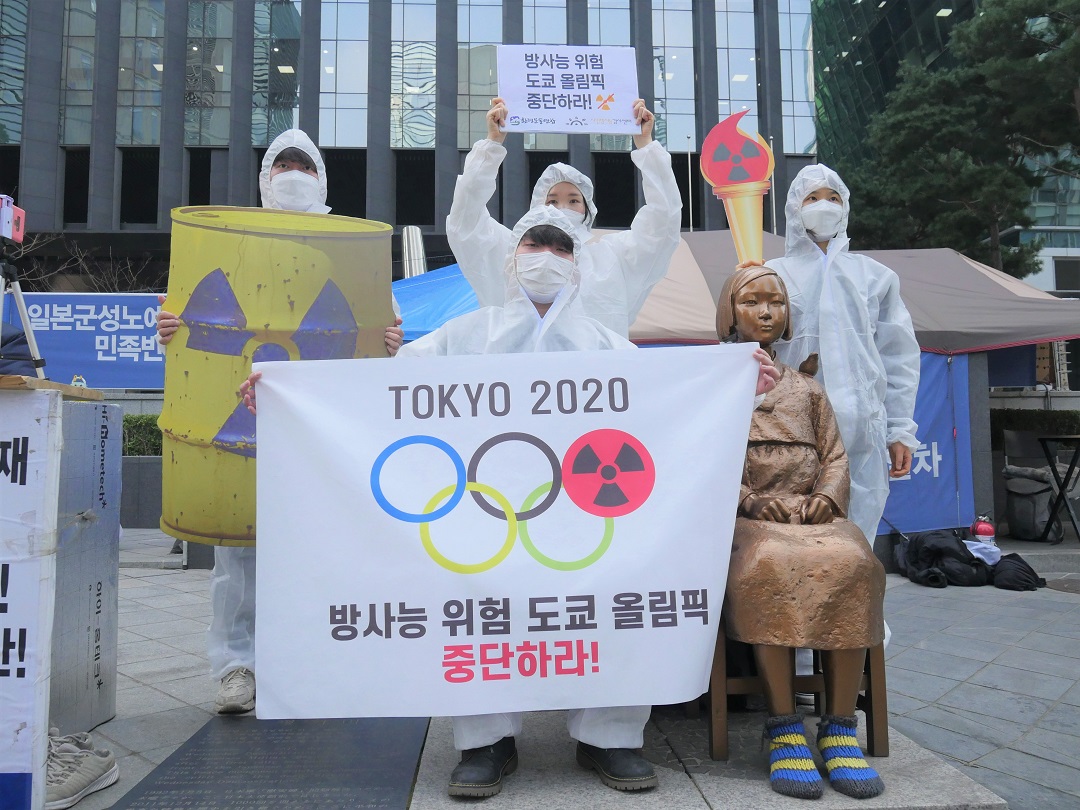 우리는 후쿠시마의 진실을 가리고 방사능 오염으로 얼룩진 도쿄올림픽 중단을 요구한다. 방사능 오염지역에서 진행되는 성화 봉송과 경기 개최, 후쿠시마산 식자재 선수촌 공급 계획을 당장 취소해야 한다. 한국 정부는 안전을 무시한 채 올림픽을 방사능 오염을 감추는 데 활용하는 도쿄올림픽 조직위원회와 이를 방치하는 국제올림픽위원회에 적극적으로 항의하고, 우리 선수들의 안전을 위한 근본 대책을 마련하라.