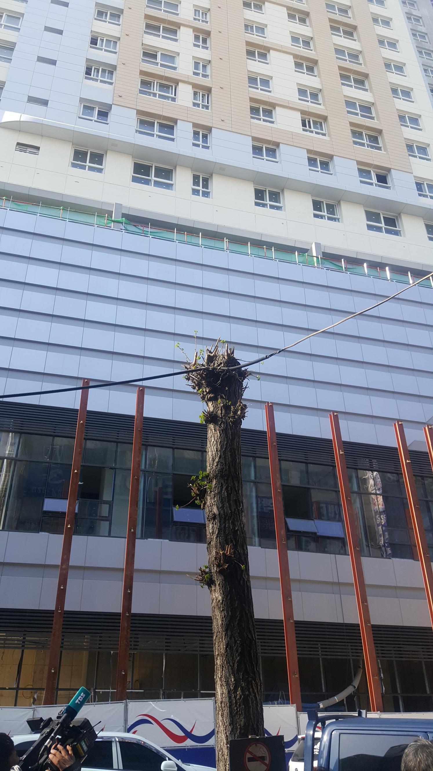오늘 범계역 근처에서 가로수에 심한 가지치기를 당한 가로수에 관련하여 TBS 방송국 측에서 촬영이 있었습니다.