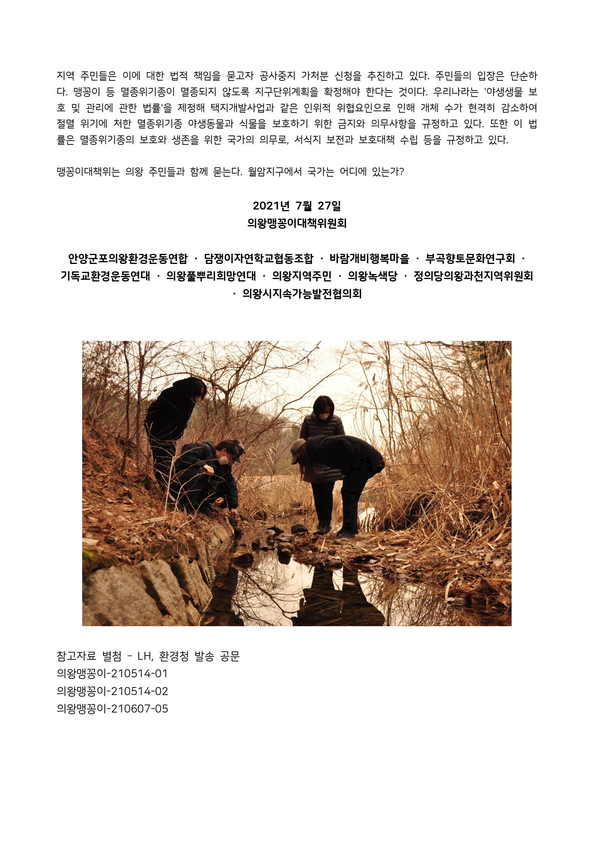 [의왕맹꽁이지킴이 대책위원회 성명서]