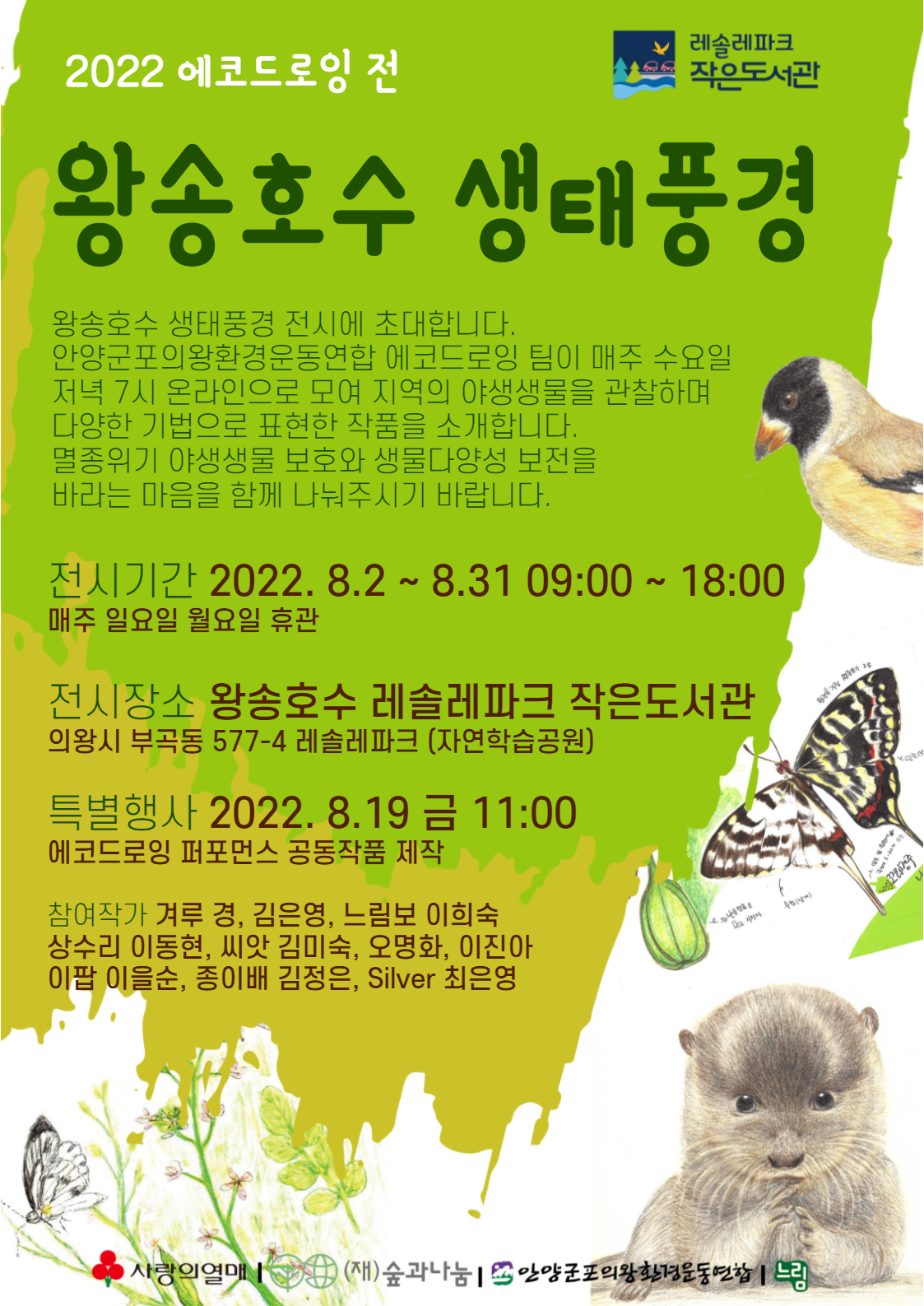 왕송호수 생태풍경 2022 에코드로잉 단체전이 더 많은 시민들에게 왕송호수 생태계의 다양성을 알리는 계기가 되기를 바란다.